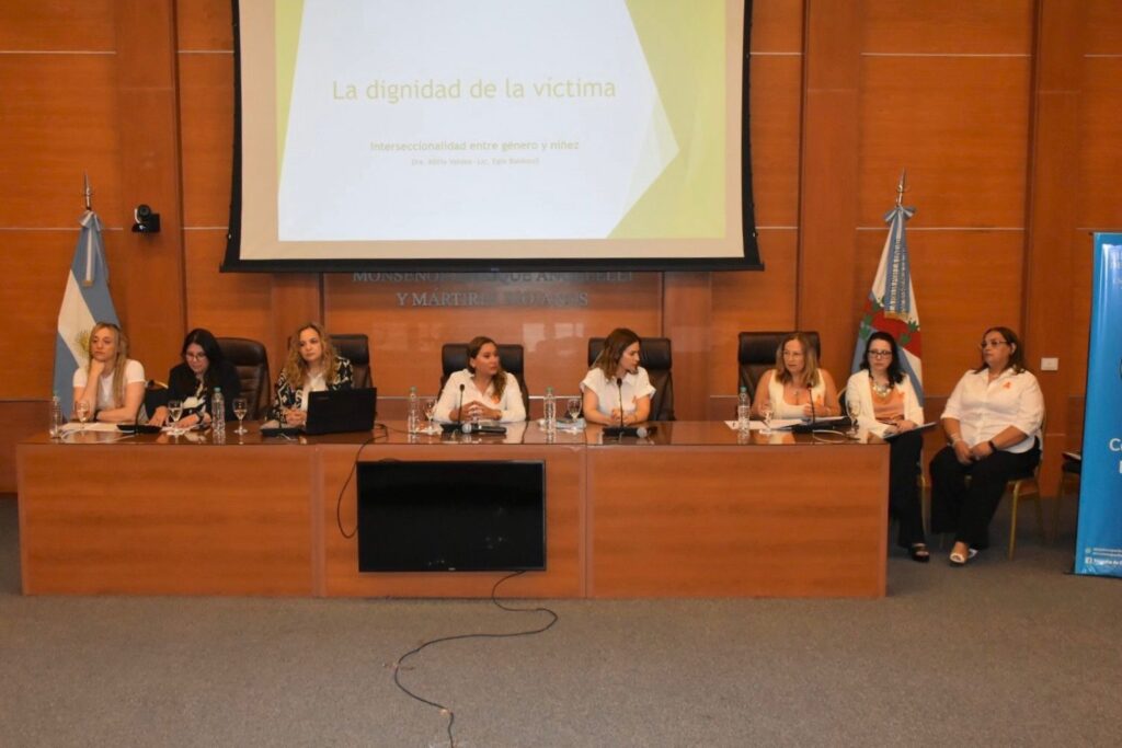 La jornada contó con una mesa de apertura integrada por la Dra. Gabriela Irina Asís, Vocal del TSJ y Responsable de la Oficina de Género; el Dr. Miguel Ángel Zárate, Ministro de Seguridad de la Provincia; la Dra. Karen Navarro, Secretaria de la Mujer; Gisela Carpio, Directora de la Oficina de Género; y la Dra. María Cecilia González, en representación de AMJA.